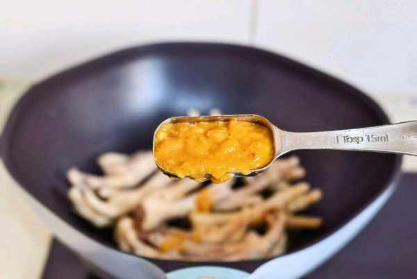 6、继续在锅中加入60g的蒜蓉金汤酱料和1勺生抽,翻炒2分钟,炒至鸡爪均匀上色即可。