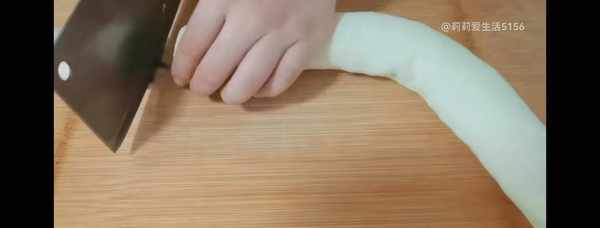 涂抹均匀后将面片从上往下卷起来,用刀切成一个一个的小剂子。