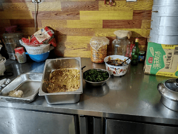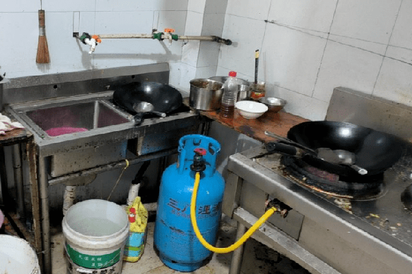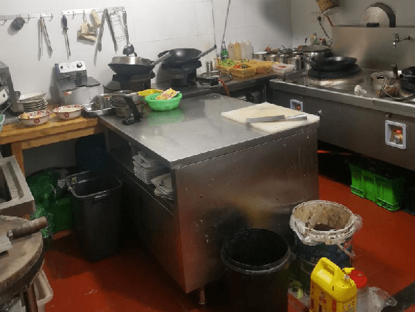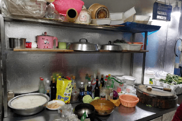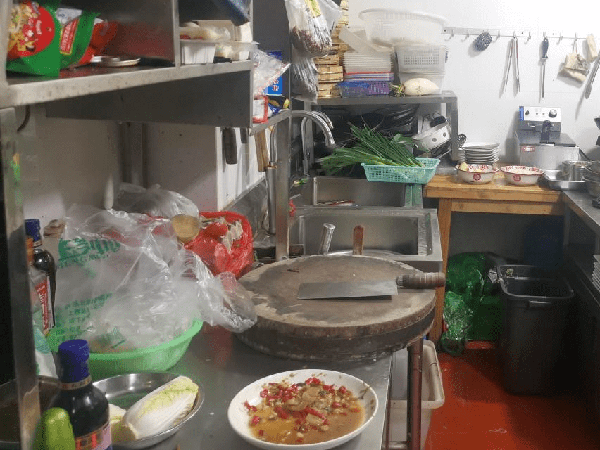 后厨卫生差,物品摆放凌乱