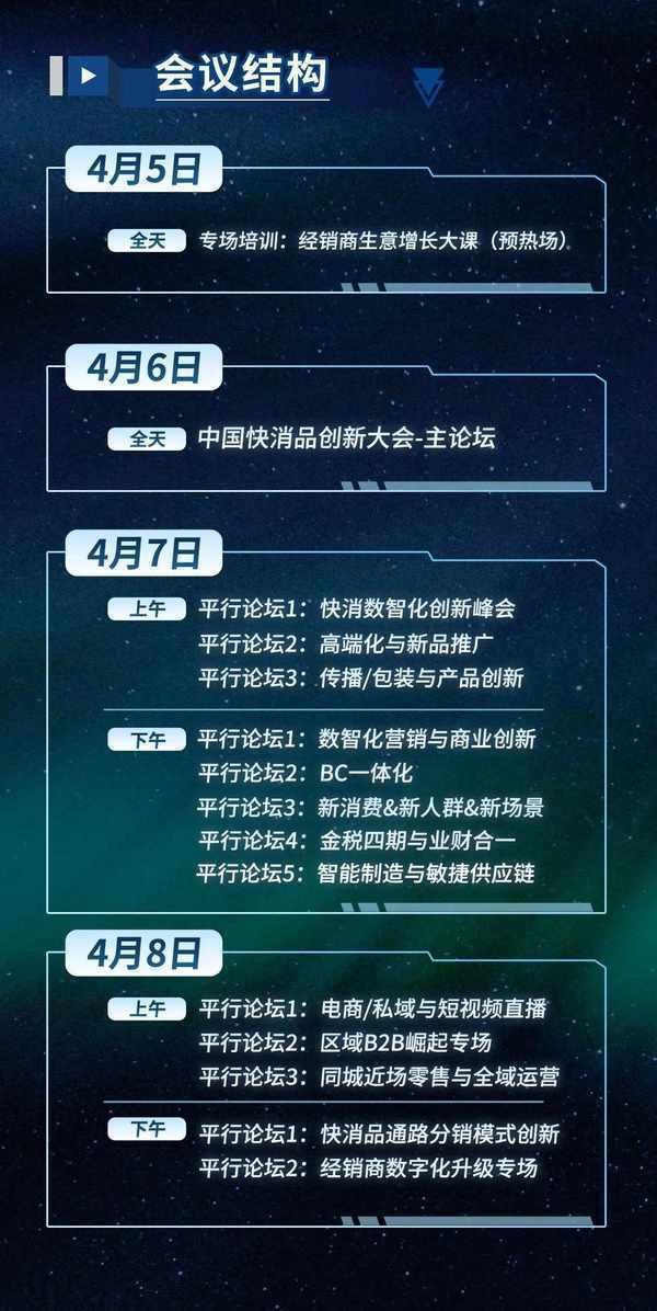 本次大会将围绕【新世界 新快消】为主题,3天时间,130位嘉宾,13场平行论坛,聚焦行业头部品牌高管、平台创始人、全国各地优秀经销商等,共同探讨在新世界时代下,关于快消行业的最新动向,渠道的最新变化,市场发展的最新趋势,学会如何在新世界里,应对新变化,实现新增长,成为新快消!