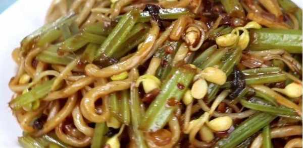 【烹饪食材】面条,芹菜,黄豆芽儿大蒜,小葱,食用油,花椒豆瓣酱,食盐,生抽,老抽