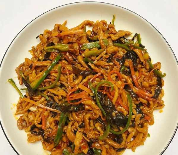 不仅如此,鱼香汁还广泛运用于其他川菜进行调味。做好的鱼香肉丝整体味道咸鲜酸甜兼备,葱姜蒜香浓郁,而且肉丝质地还相当的柔滑软嫩,在视觉上油光红亮,色彩丰富,让人看了直接食欲大增。