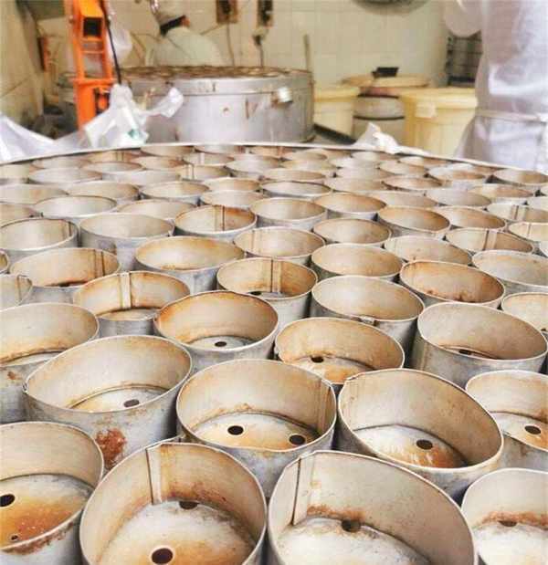 店里主要就做杂粮红糖发糕和黄糖碗耳糕,每天用掉250斤左右的面粉,外加荞面和玉米面,发酵成湿面团大概在600斤左右,一年用掉15吨红糖,面团都是每天到店后和面发酵的,很新鲜,大姐说和面和发酵时间是决定发糕口感的关键,控制不好做出来的发糕要么太硬、要么是软塌塌的没有回弹。
