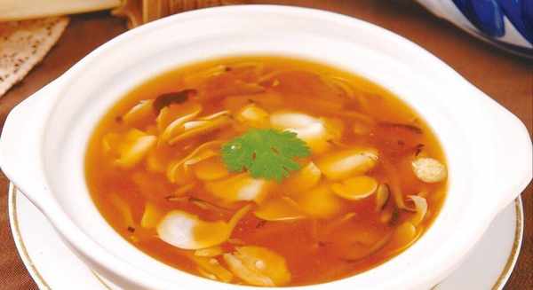 酸辣乌鱼蛋汤曾代表豫菜出席国宴,是豫菜中独有的美味佳肴。乌鱼蛋汤中的乌鱼蛋其实是墨鱼卵,并不是真正的蛋。