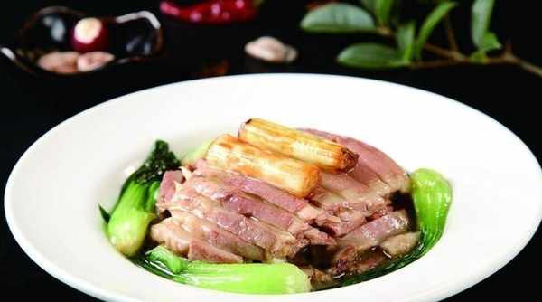 烹调技法复杂,成菜后的鸭肉肥而不腻,色泽红艳明亮,鸭皮酥脆,肉质嫩爽可口,搭配甜面酱、黄瓜丝、葱丝食用,一口下去幸福感超级满足。