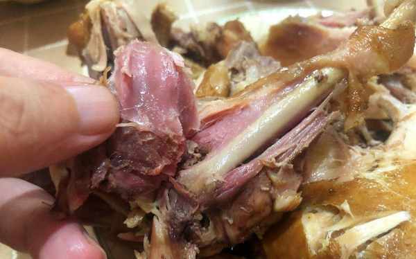 道口烧鸡最大的特点就是用手一抖,骨头就会脱离,它肉质软烂,鲜嫩不腻,而且是不会碎掉。也正是由于它是中药秘制,所以食疗和营养比其他烧鸡也是更胜一筹。