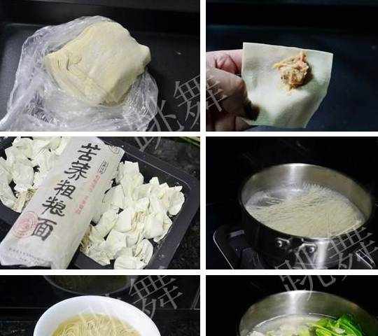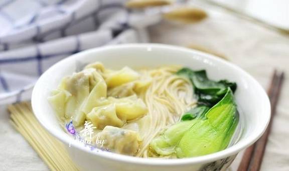 面条煮好捞起,馄饨煮熟,烫下青菜,奢侈的可以煎个蛋都成