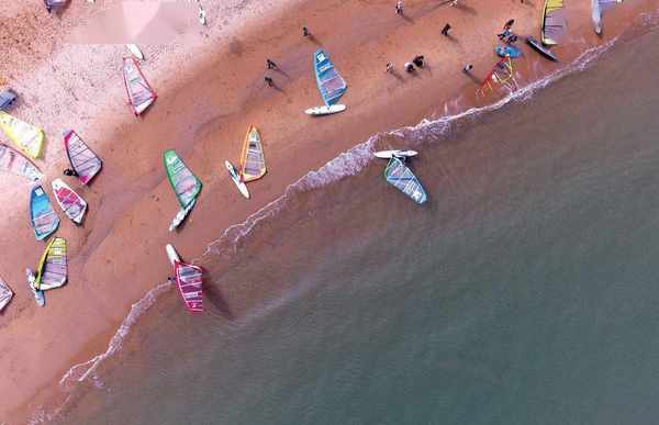 参加第四届国际旅游岛帆板大奖赛海口赛的选手在比赛结束后上岸 杨冠宇 摄