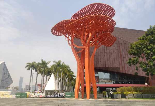 今天,总算有时间进去逛一逛了。为了方便游玩,没有开车,而是乘坐9号地铁直达深圳欢乐海岸。出地铁口首先映入我眼帘的是高高的红蘑菇雕塑,以前路过,以为只有一个雕塑,到现场才发现广场周边有三个这样的雕塑。