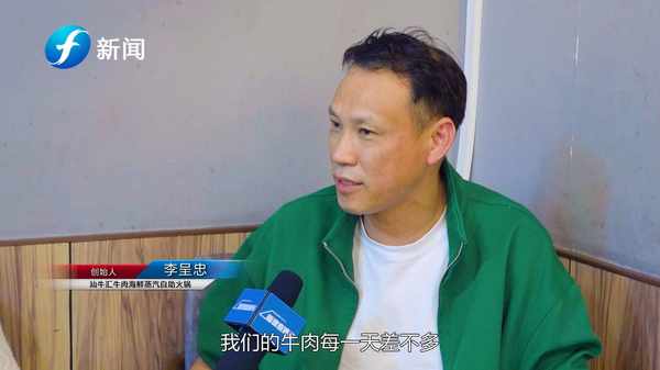 汕牛汇牛肉海鲜蒸汽自助火锅创始人李呈忠:我们的牛肉每一天差不多晚上是四点钟送过来,中午差不多十一点钟送过来,海鲜每一天都去马尾拉。