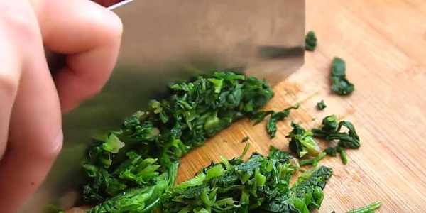 3.然后捞出来挤干水分,用刀切成小碎丁备用。