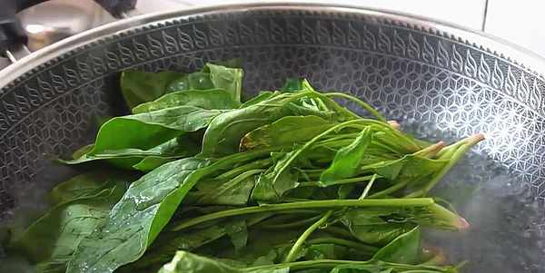 6.接着再把菠菜倒进来,搅拌均匀即可。