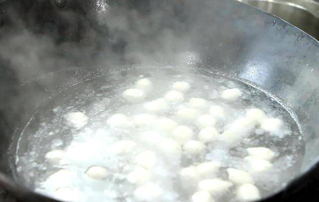 4.锅内烧水,水烧开以后把肉馅握在手中,用虎口挤出丸子,用勺子舀出放进锅里,搅拌上劲成功的丸子是入水就会漂浮,不成功的是入水不会漂浮,入水一会儿才漂浮是勉强及格。