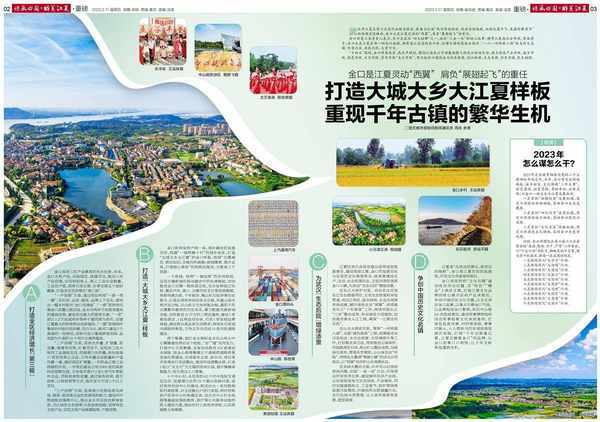 武汉市江夏区第六次党代会报告提出,要着力打造“凤首昂扬挺进、凤身坚劲挺拔、双翅比翼齐飞、尾翼舒展有力”的协调竞进格局。金口正是江夏灵动的“西翼”,肩负“展翅起飞”的重任。