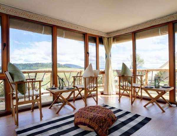 酒店的每一间房都是特别的独特,和我们日常看到的房间拥挤在一层楼里的酒店不一样,这里基本都是散落在牧场的各个角落,这也极大的给了我们更多的想象。因为外形特别像是帐篷所以很多人都称它为帐篷酒店。这座景点里面所有的设施都是按照五星级标准建造的,非常的豪华。