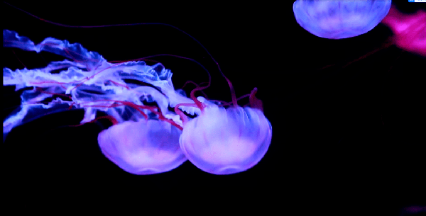 成群的水母,丝丝缕缕,自由张弛,色彩变幻,梦一般的世界。