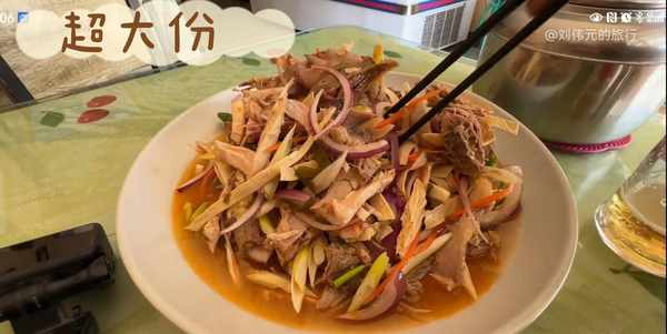 经过吉木萨尔县城,中午伟元要了一份椒麻鸡,没说多少钱,不过这个份量真是绝了!要是在内地城市,估计可以当五份卖了,真是太过瘾了!