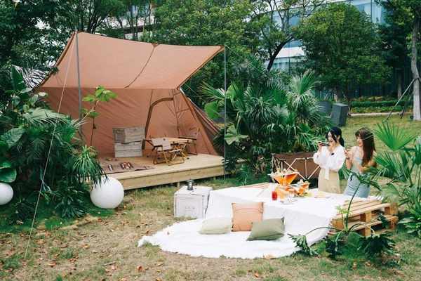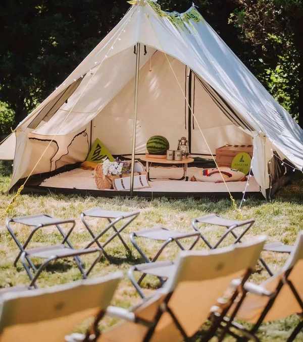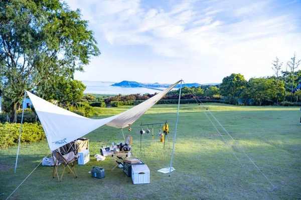 置身万丽草坪,目之所及尽是江南芳华与摩登时尚,小到杯子大到桌椅,你能想象到的一切户外露营元素都能在这里找到,让你不出酒店打卡网红地标。