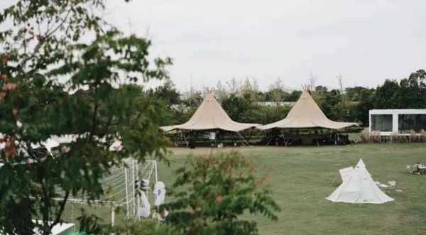 450平模块建筑集饮品空间、艺术空间为一体,纯白色的帐篷散布营地各处,整体让人感觉既文艺又高雅。