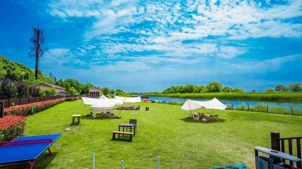 太湖绿廊艺术营地这里各类露营设备租借,精致露营下午餐、烤肉火锅等各种体验。30亩天然草坪,网红咖啡、露营生活、帐篷实景打卡、互动体验一应俱全。