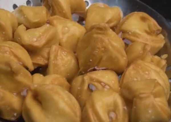 4. 生胚在炸制的过程中要不停地翻动,防止粘锅。