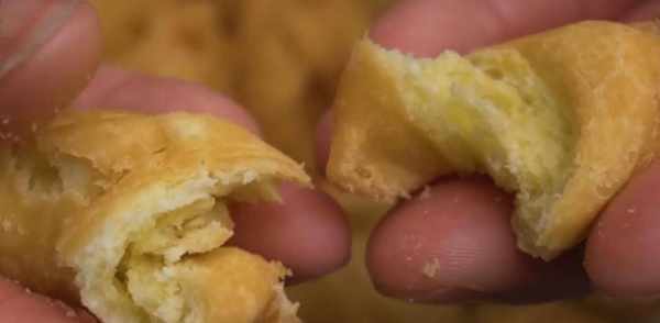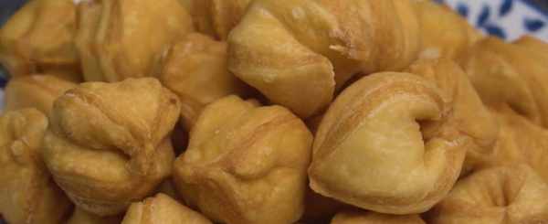3. 做核桃酥胚的时候一定要记得对角出要沾水,然后对折捏紧,这样在炸至的过程中,就不容易张口了。