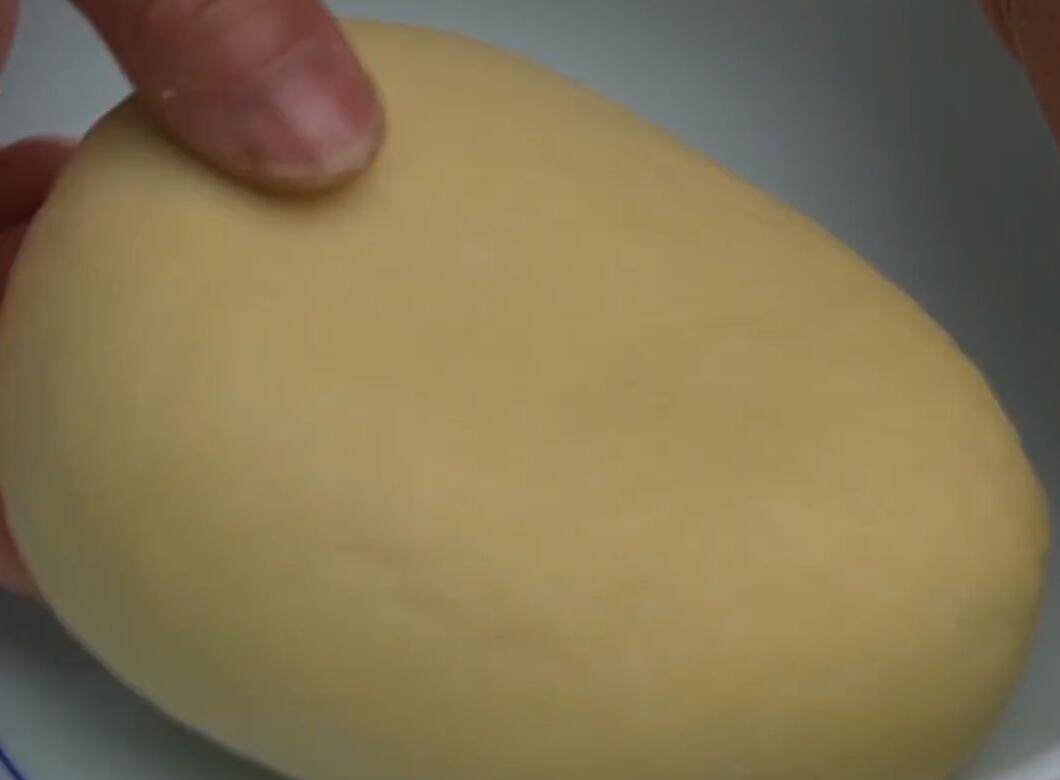 第一步:先做一个水面团:准备一个干净的大碗,碗中倒入150克中筋面粉、打入一个鸡蛋、加入15克的玉米油、35克清水;用筷子搅拌均匀,然后搅拌成絮状,上手揉成光滑的面团;准备一个干净的保鲜袋,将揉好的面团放在保鲜袋中醒面备用。