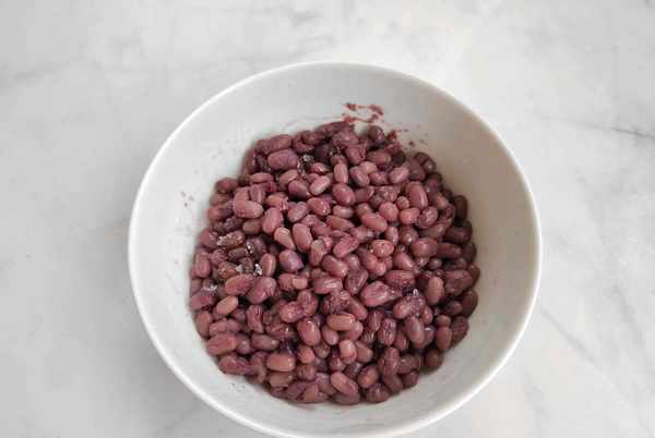 第一步:先把蜜红豆准备好,红豆提前浸泡一个晚上,清洗干净,放入电饭锅中,倒入适量清水,煮40分钟,把红豆汤沥掉,加入适量白糖拌匀就可以了。