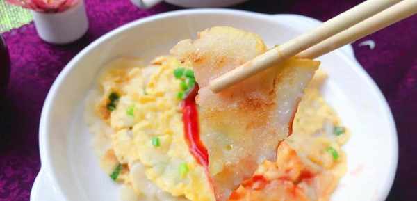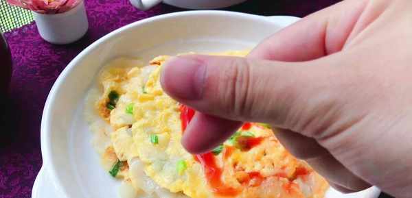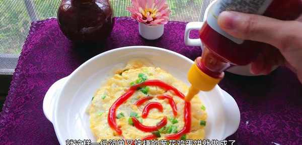 起锅之后,直接吃也很美味,鸡蛋液和面粉都有调入适当的调料让饼有滋有味。喜欢吃甜一点的,可以加上一点番茄酱,红红的番茄酱加上金黄的鸡蛋饼,色泽诱人,酥脆可口