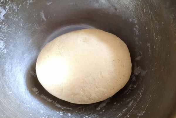 1、将我们准备好的200克的全麦面粉倒入一个大碗中(当然,没有全麦面粉,用普通面粉代替也是可以的,因为全麦面粉的营养价值比较高,所以我平时都是用全麦面粉做),然后将全麦面粉摊平,在碗中一分为二。其中一半的面用全开的热水烫一下面,另外一半的面用65克左右的冷水搅拌一下,将面搅拌均匀,然后将所有的面混合在一起搅拌成絮状以后,下手揉面团。将絮状面粉揉成光滑的面团以后,放在一个大碗中,盖上保鲜膜或者盖子,放在温暖的地方醒发一会儿。