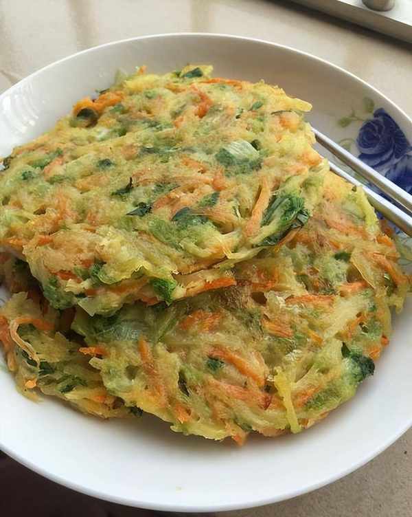 面粉中倒入水搅拌成面糊后放入包菜丝、胡萝卜丝、盐调味