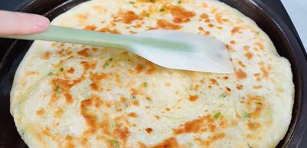17.反复翻面多次,一直烙到两面颜色金黄,饼面微微鼓起的程度就可以了。