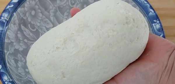 4.接着移动案板上,揉搓几下,很快就揉光滑了。放入盆中,盖上盖子,醒面20分钟。