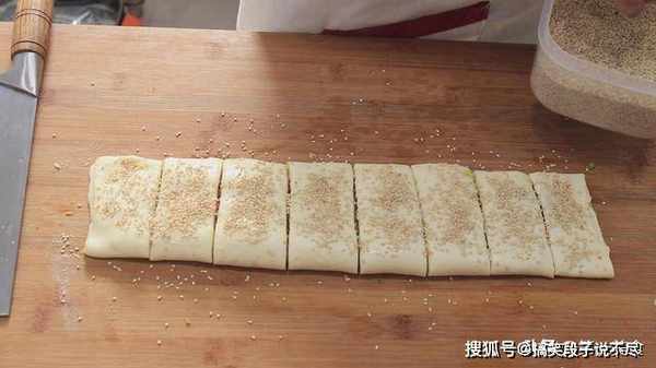 用刷子在面剂子上面刷上清水,撒上白芝麻 。