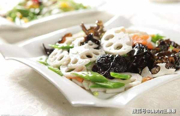 1、把莲藕去皮切片,荷兰豆去筋洗净,木耳和银耳泡发后撕成小块,胡萝卜用模具压出花形,没有模具可切菱形片。