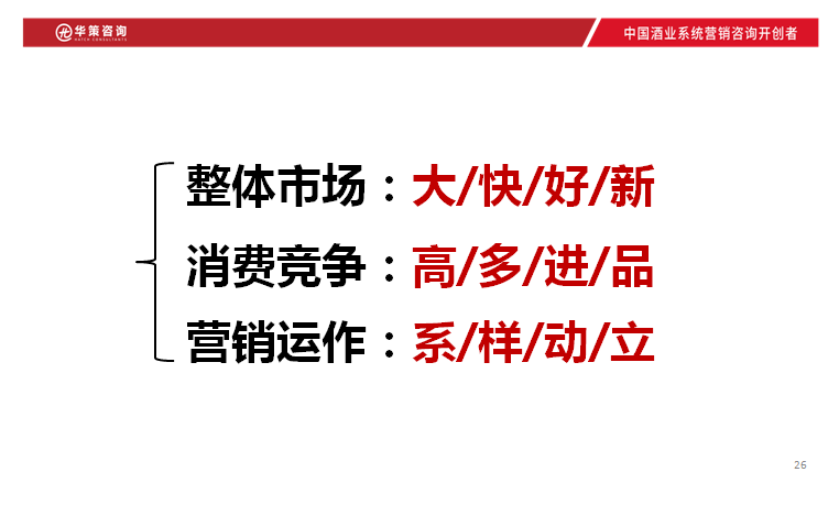 过去光瓶酒依靠盒内新奇促销奖项、低价、终端战术等方式即可获得成功,但伴随时代变迁,传统的做法已难以形成突破。在新一轮的光瓶酒市场竞争中,获取胜利的关键将是系统化营销。