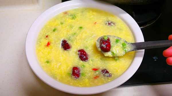 3.大约煮5分钟左右后加入适量的盐调味,接着淋入半碗水淀粉,目的是为了使粥粘稠口感好,边淋入边搅拌,搅至粥变粘稠后再将火转小,继续淋入一个打散的鸡蛋液,煮至蛋液凝固成漂亮的蛋花后,继续转成大火,烧开后就可以关火出锅啦,香浓好喝,营养丰富易消化!