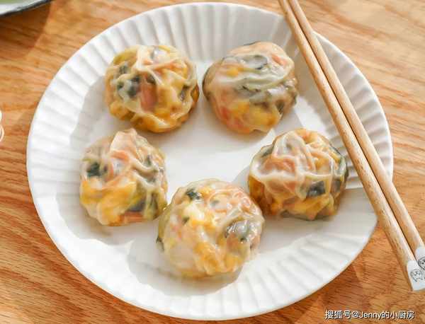 最后用馄饨皮包好馅料,放进蒸锅内,大火蒸五分钟即可。