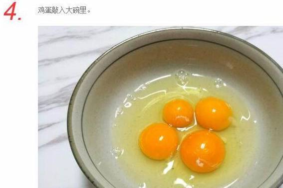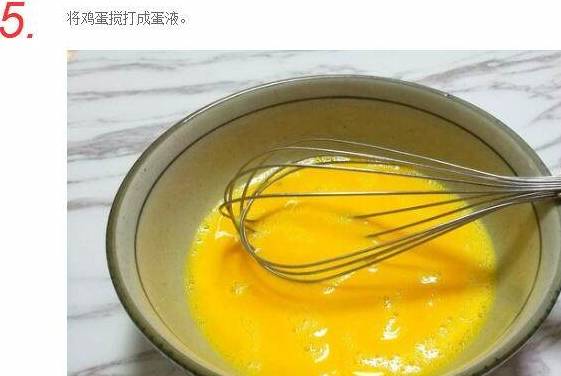 把鸡蛋打入大碗中,并用打蛋器将鸡蛋打成蛋液,