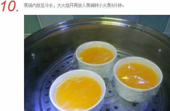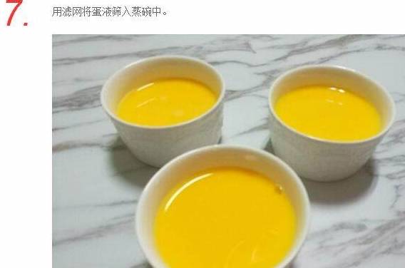 然后用滤网把蛋液过滤下,然后淡入3个蒸碗中,