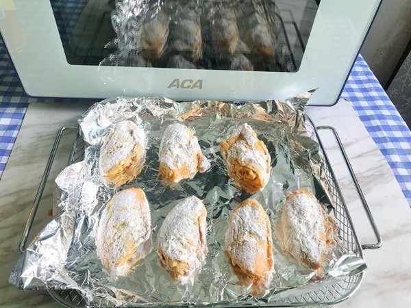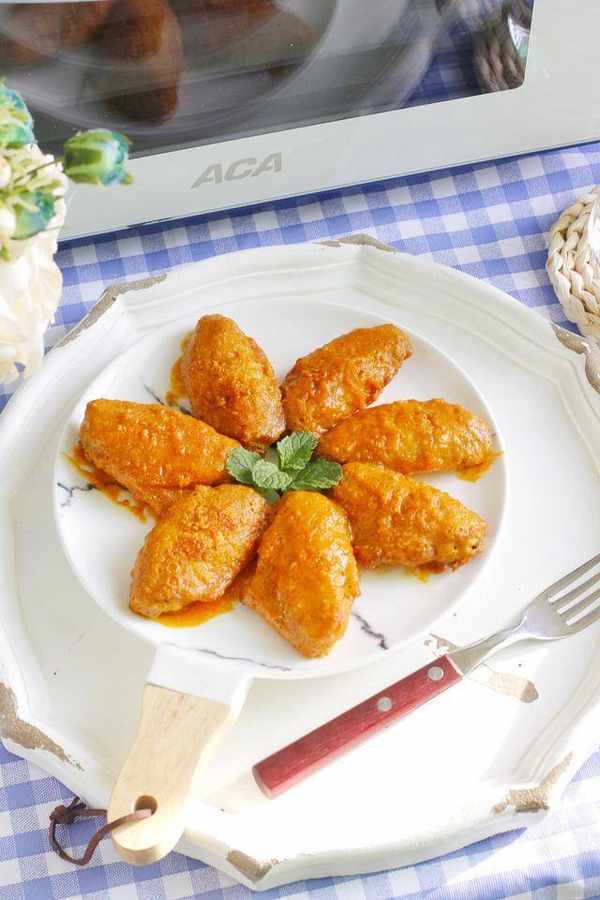 步骤六:把鸡翅放到烤盘上,然后进烤箱。200度的温度烤20分钟。
