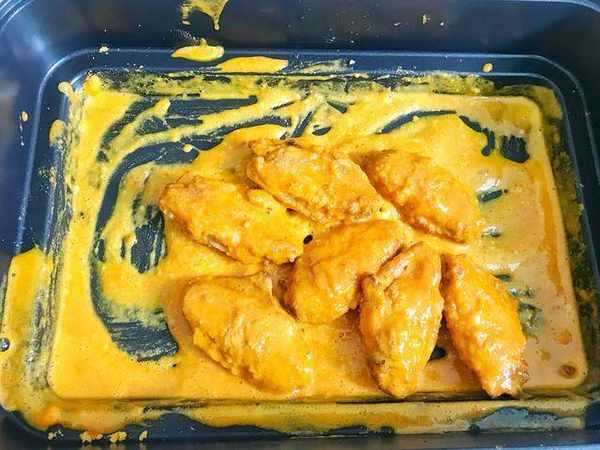 步骤七:另外起锅把剩余的咸蛋黄加油炒好,然后鸡翅烤好之后直接裹上咸蛋黄就可以吃了。