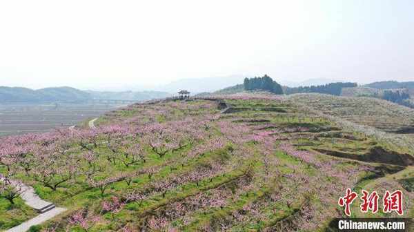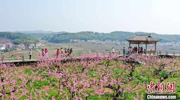 成片的桃花吸引游人来踏青赏花。 熊海栋 摄