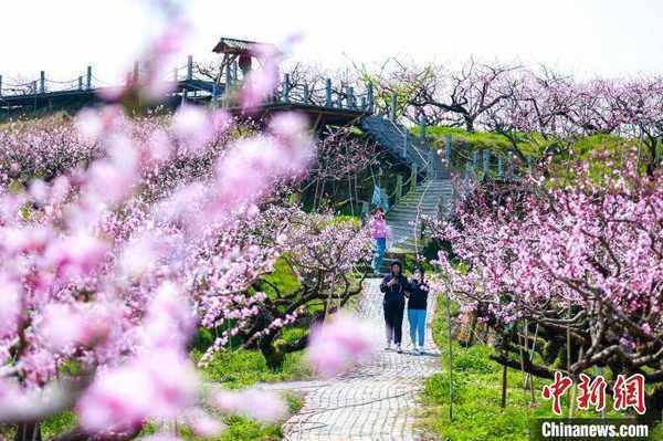 春回大地,万物复苏。连日来,在福建省三明市建宁县里心镇花果山景区,成片的桃花、梨花竞相绽放,吸引游客尽情徜徉其中、拍照打卡,定格美好瞬间。