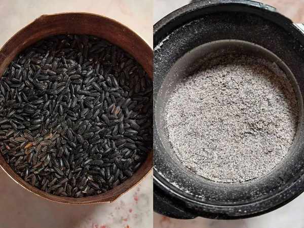 1. 黑米用研磨器打成粉,或者买现成的黑米粉,成品会更细腻一点。