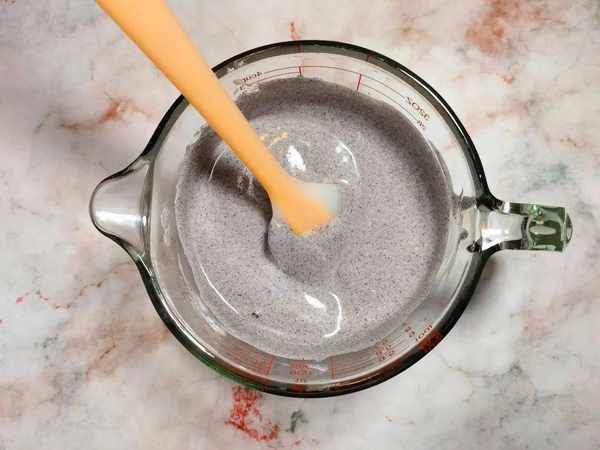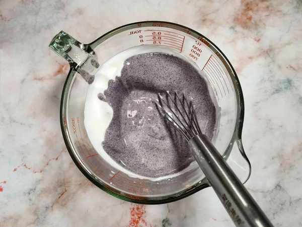 7. 此时可以蒸锅可以开始烧水。取出1/3蛋白霜加入黑米液中翻拌均匀。