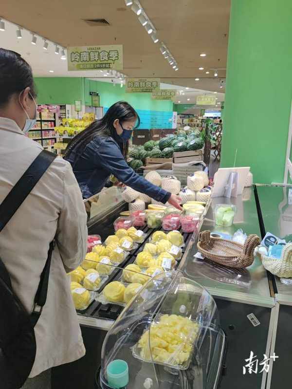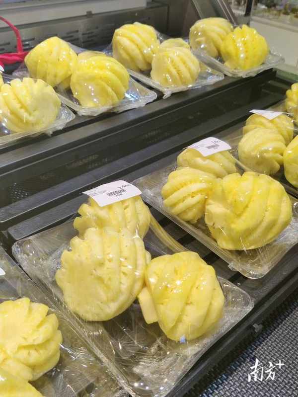 与其同时,珠江新城地铁口附近的高端商超也摆满了鲜切菠萝。“老喝咖啡奶茶也腻了,想买点鲜切水果当下午茶,健康点,刚好现在春天有菠萝卖。”趁着上班午休时间到超市里购买鲜切菠萝的张女士说。近年来,鲜切水果正逐渐成为年轻人下午茶新选项,鲜切菠萝正逐渐成为水果界的新爆款、年轻人的新宠。