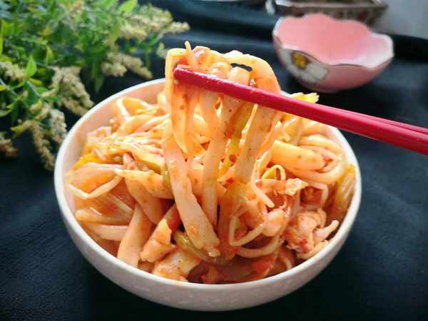 8、吃起来光滑筋道,香辣爽口,经济实惠还美味,一点不比买的差,喜欢的朋友赶紧在家试试吧。