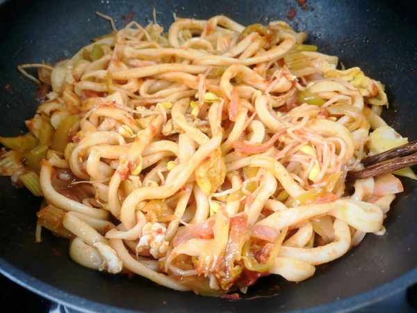 昨天晚上和老公一起出去逛庙会时,看到一家新疆摊点在做炒拉条子。老公看着非常想吃,所以就去专门走进店里点了一盘。看着老公非常喜欢吃,我也不由自主的尝了几口?果不其然,吃起来特别爽口。回到家以后,老公意犹未尽,仍然赞不绝口。于是我今天中午就专门给老公做了这道炒拉条子吃。其实,面条这样做,比焖面还好吃,劲道又入味,吃得营养又舒服!