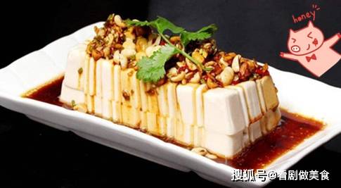 (3)将皮蛋放在豆腐上,淋入味汁,撒上葱花和熟芝麻即可。